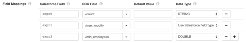 rather than using field aliases. In the Salesforce Field property, enter the default