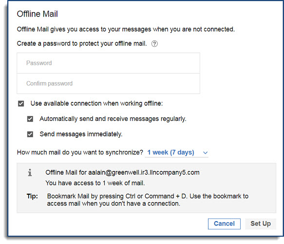 Once your offline mail is configured, it may take a few minutes before the setup is active and