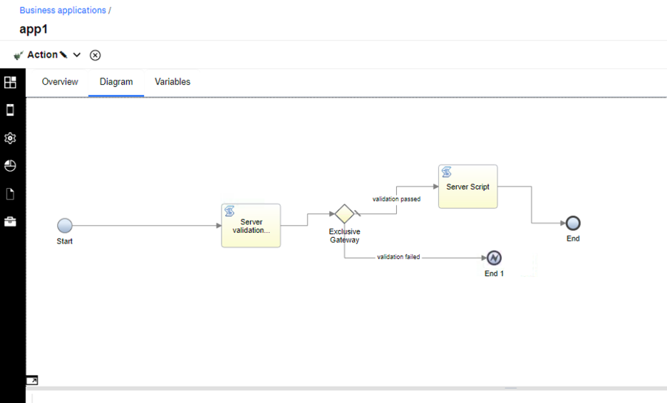 If data is only needed within an action, avoid exposing it to the application. Variables in actions are only visible to the server. However, input variables are received from the caller and output variables are sent back to the caller. Actions that receive data as input from an application should validate the data before they act on it. If the output data needs to be passed from one action to another action, use a third action to call both and exchange the data rather than using the application to act as the intermediary.