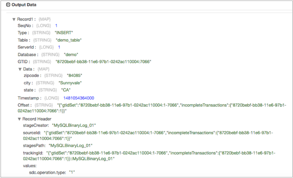 For example, the origin generates the following record when it reads a binary log file for a MySQL server with GTID enabled for a table without a primary key: