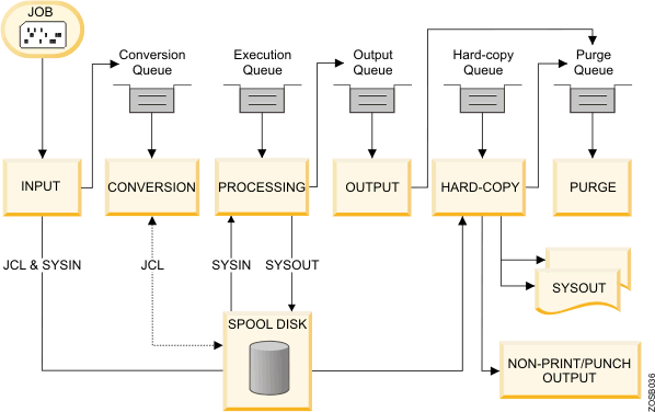 sets. JES2 then selects jobs from the spool data sets for processing and subsequent
