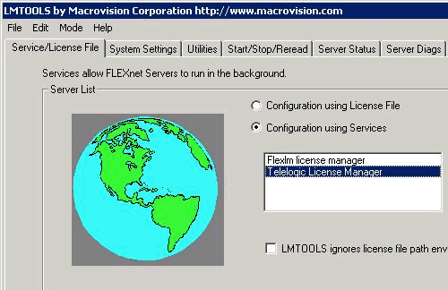 The Telelogic installer of about 8 MB creates its own path and files into your existing Rational License Server (LMTOOLS). In addition, the installer adds its own service to your existing license server.