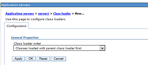 These can be changed for various reasons but normally the desired behavior can be reached with the default settings. For this reason, these classloader settings are not described in this document. See the appropriate information for your release for additional information on the classloader settings.