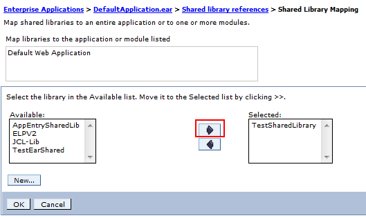 - c. Select the newly created library and click on the right arrow to add the shared library to Selected textbox. Click OK.