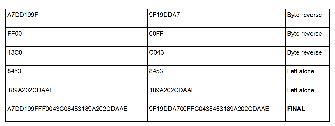 For example, this GUID as displayed from FileNet Enterprise Manager, needs to be byte reversed so that it can be queried upon in Oracle. When querying on GUIDs, GUIDs are stored in byte-reversed form in Oracle and DB2 (not MS SQL), whereby the first three sections are pair reversed and the last two are left alone.