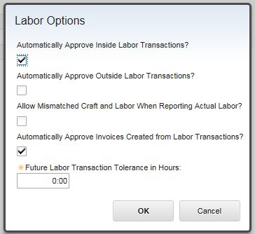Optionally, you can change the settings for Labor Options (illustrated above) in the Organizations application: