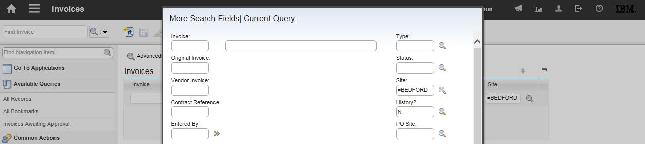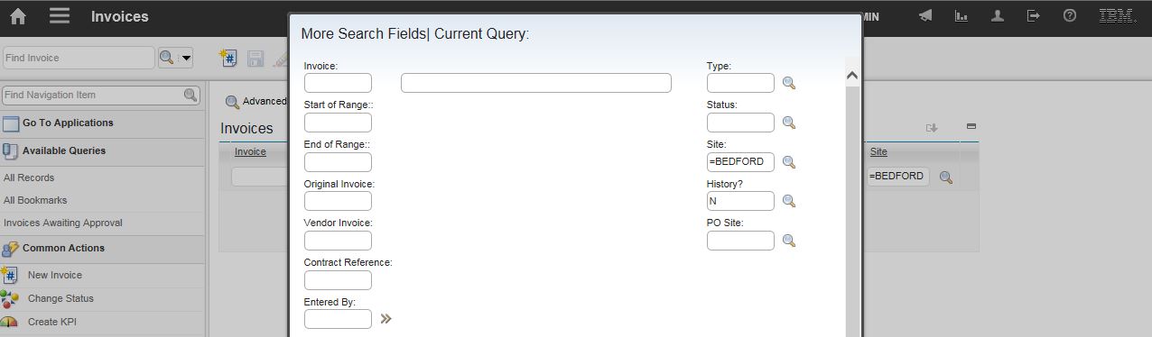 From the Maximo Support Desk - Configure the Invoices Advanced Search to allow Searching for a Range of Invoice Numbers