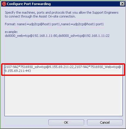 11. SSR / IBM service representative Tasks: The syntax is "nickname=tcp@IPaddress:Port". For example: 2107-9A2*7516930_ssh=tcp@172.16.0.1:22