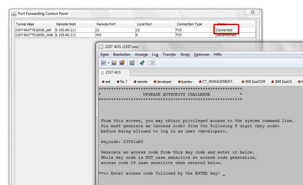14. Support Center Task: Confirm all informal messages and start the tunnel. Select a Port, which is free on your ThinkPad. If you have no SSH server running, port 22 is free to use.