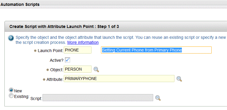 3) Within the 'Create Script with Attribute Launch Point : Step 2 of 3' add the following: