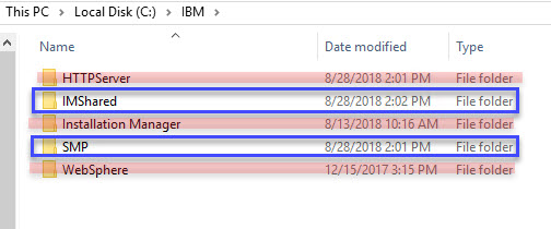 ...But not the Installation Manager application directory, [which in this case I put into C:\IBM rather than C:\Program Files\IBM]. If you need to manually roll back or re-create rather than rollb ack to a snapshot of the Admin workstation, you will have to install Installation Manager anyway.